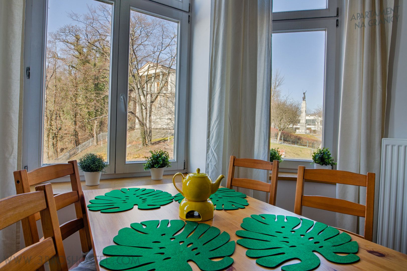 Z przytulnego wykuszu możesz podziwiać malownicze krajobrazy: rzekę Olzę, Wzgórze Zamkowe oraz codzienne życie toczące się po obu stronach granicy. To miejsce, gdzie historia i nowoczesność spotykają się w jednym kadrze.