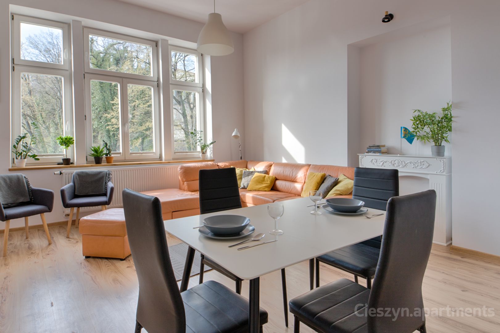 Wydawałoby się, że to mieszkanie Na Granicy znajduje się najbliżej polsko-czeskiej granicy. A jednak nie! W tym specyficznym konkursie wyprzedza je sąsiad z piętra, czyli Zamkowa Apart, którego od mostu granicznego, łączącego polską i czeską stronę miasta dzieli dosłownie kilkanaście metrów. Nic więc dziwnego, że widok z okna jest wprost imponujący – widać bowiem zarówno rzekę Olzę, Wzgórze Zamkowe, jak i główną ulicę w Czeskim Cieszynie.